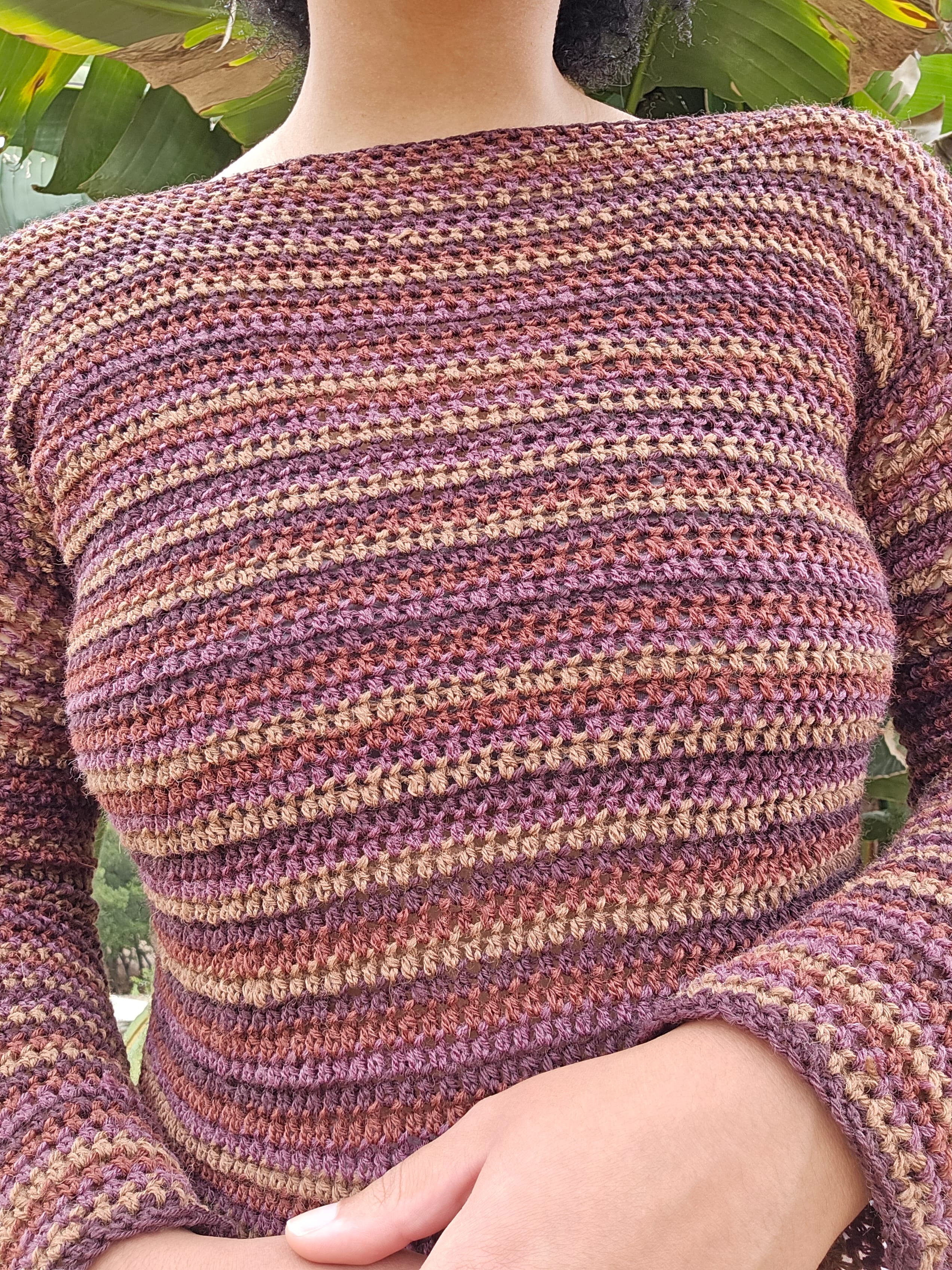 This sweater pattern is designed as a made to measure pattern that can easily be adjusted for any body shape of color palette. Choose to make all of the color changes or use one solid color. This pattern is made for beginners to practice hdc and making a simple sweater pattern. Feel free to customize the pattern as you see fit!